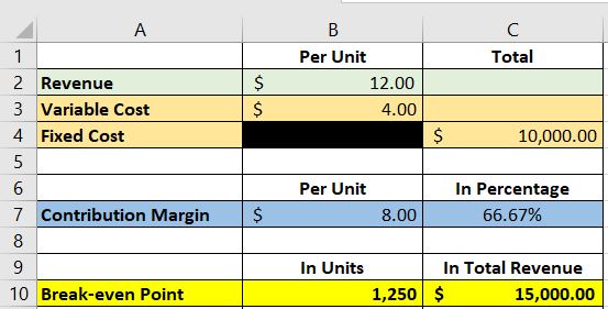 Break-even Point = Fixed Cost ÷ Contribution Margin
