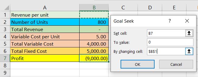The goal-seek function is useful if you’re missing just one variable (usually the revenue per unit).