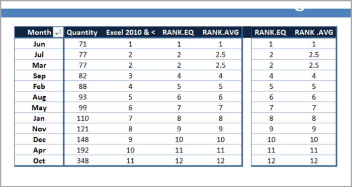 - (Here’s how the formula functions: RANK.EQ and RANK.AVG calculates the rank for each category in the data set. Both of these functions are utilized to obtain various ranking types).