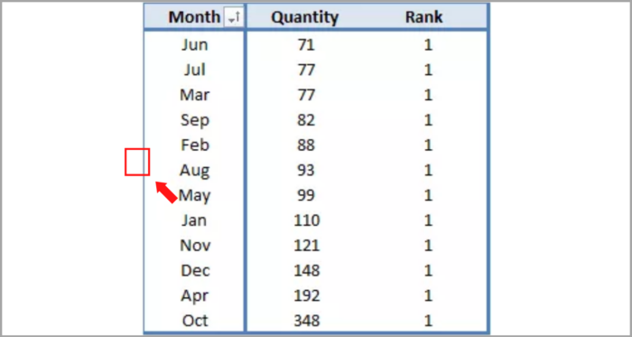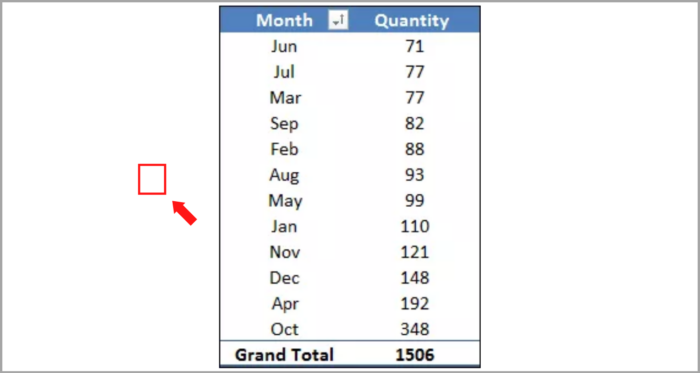 Attention: Ensure that the pivot table has been sorted in ascending or descending order before proceeding.