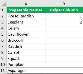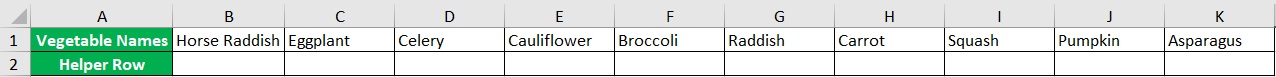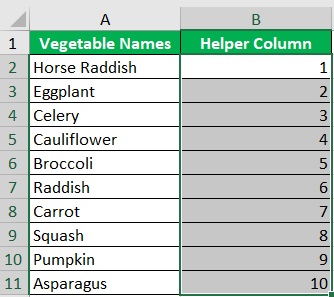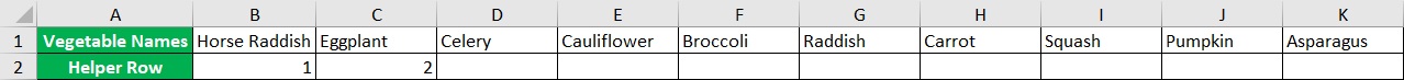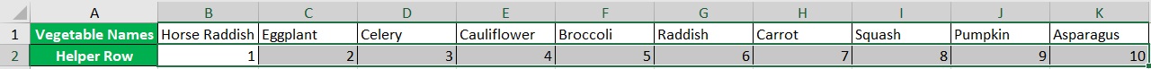 - You may label this row as “Helper Row”. In this column, you’ll be inputting numbers in ascending order (until the next empty column).