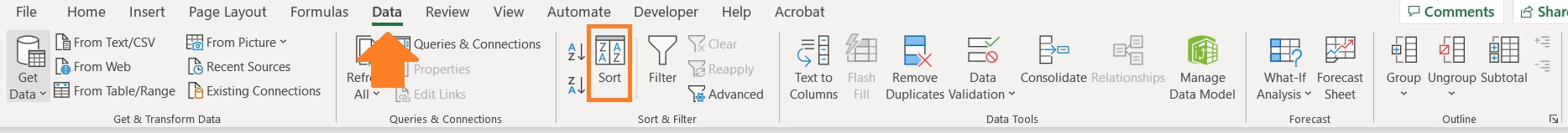 - Select the column that you want to flip and your helper column. Open the Data tab. You should find a Sort button in the middle section of the ribbon. Click on it. This will open the Sort dialog box.