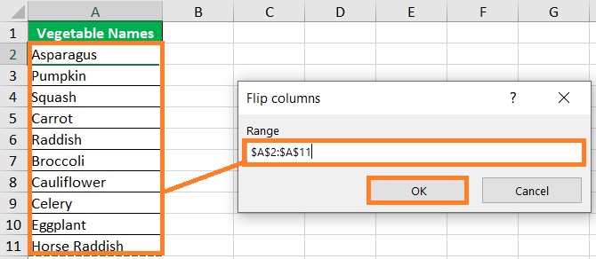 Flip Data Vertically (Flip Columns) in Excel Using VBA