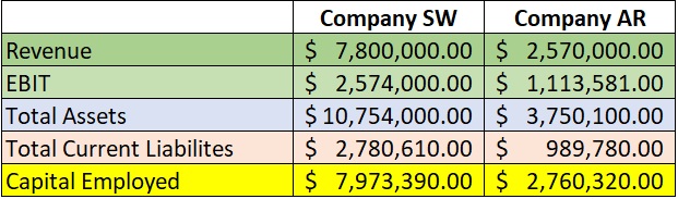 As you can see, while company SW is the bigger business, company AR has the higher ROCE.