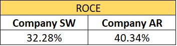 But, do all of this translate to company SW having a higher ROCE than company AR? Let’s find out.