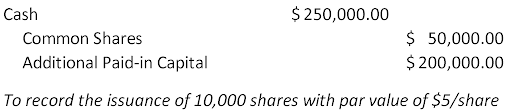 For example, if you paid $25 for a share that has a par value of $5, then the excess of $20 will be recorded by the corporation as additional paid-in capital.