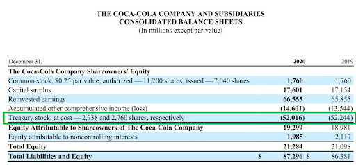 Below is an excerpt of The Coca-Cola Company and Subsidiaries consolidation balance sheet showing its shareholders’ equity portion for reference: