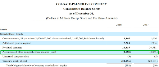 Let’s take a look at Colgate-Palmolive Company’s consolidated balance sheet for the year ended December 31, 2018 (along with a comparative balance sheet for the year ended December 31, 2017):
